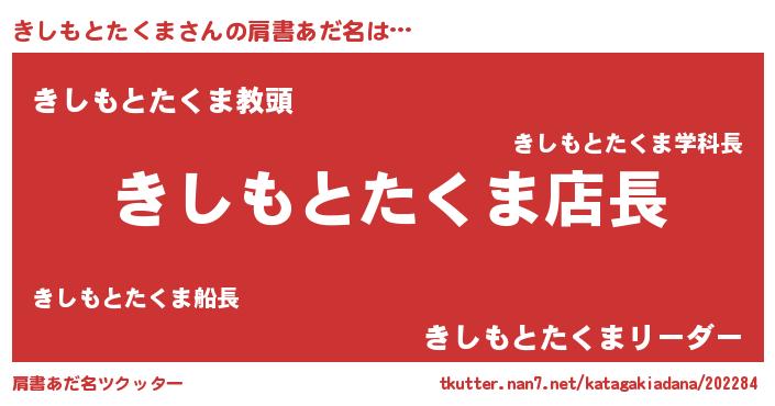 | ヘコむあだ名 | 『きしにゅー』『きしもとたくま(笑)』 |