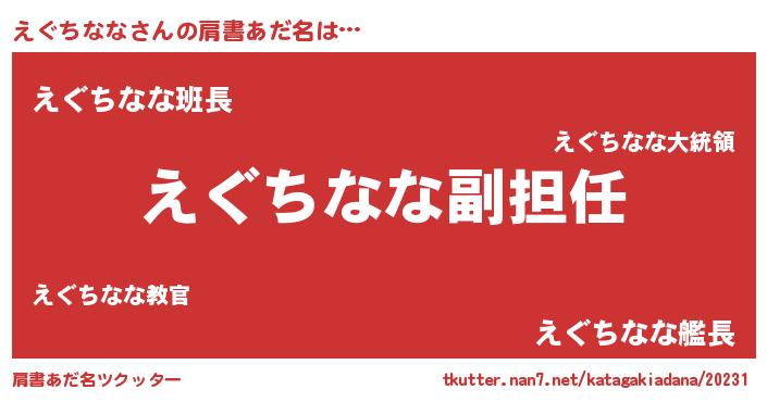 | ヒーロー風カッコイイあだ名 | 『ネオエグチナナ』『炎刃騎士エグ』 |