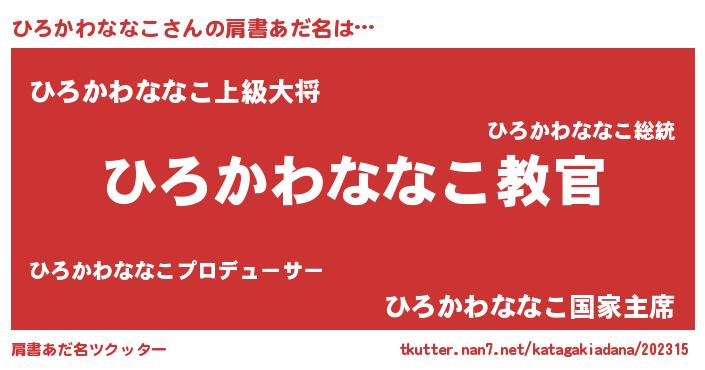 | 意味不明あだ名 | 『住所不定無職ひろかわななこ(40歳)』 |