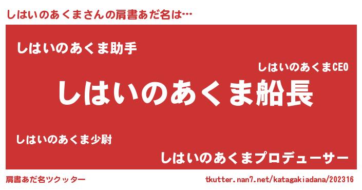 | 男性向けラノベタイトル風あだ名 | 『うちのしはいのあくまが世界を掌握している!』 |