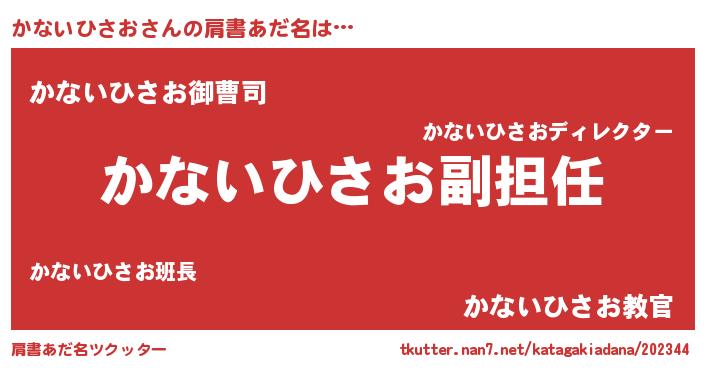 | 男性向けラノベタイトル風あだ名 | 『かないひさおという概念が存在しない退屈な世界 』 |