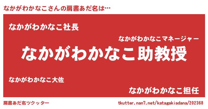 | 男性向けラノベタイトル風あだ名 | 『ノーゲーム・ノーナカガワカナコ』 |
