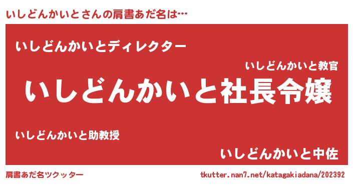 | 胡散臭い通販商品みたいなあだ名 | 『億万長者になれる霊験あらたかなお札…その名も「いしどんかいと」』 |