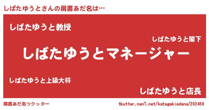 | 男性向けラノベタイトル風あだ名 | 『しばたゆうとに滅ぼされるだけの簡単なお仕事です』 |