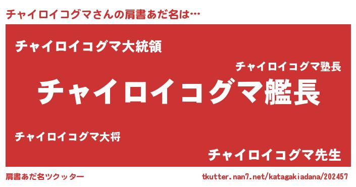 | 胡散臭い通販商品みたいなあだ名 | 『世界が平和になる高級そうな壺…その名も「チャイロイコグマ」』 |