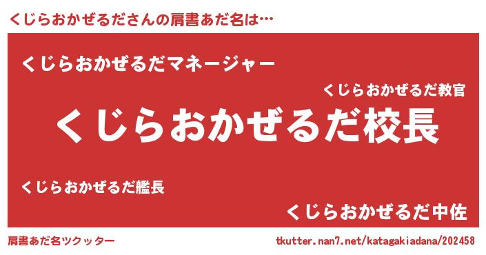 | 意味不明あだ名 | 『永久保存くじらおかぜるだ』 |