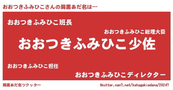 | 男性向けラノベタイトル風あだ名 | 『転生したらおおつきふみひこだった件』 |
