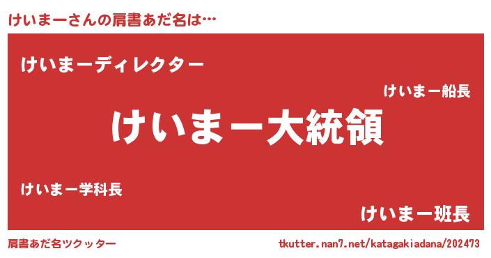 | 欧米人風あだ名 | 『けいまークリステル』 |