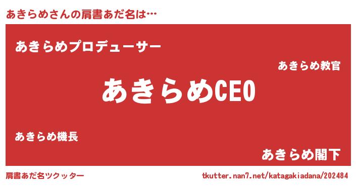 | ヒーロー風カッコイイあだ名 | 『スーパーアキラメ』『最強戦士アキラメ』 |