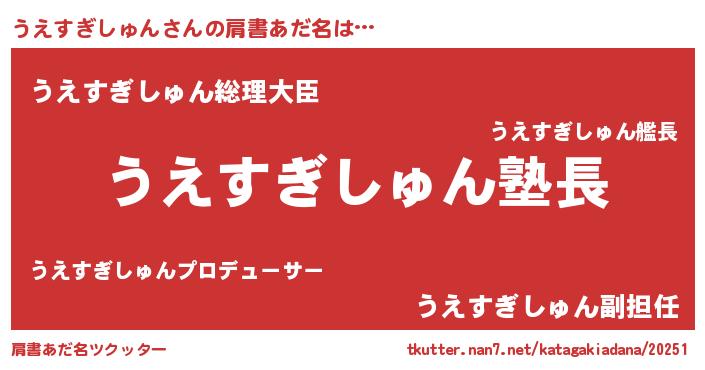 | 女子向けラノベタイトル風あだ名 | 『うえすぎしゅんは平凡を望む』 |
