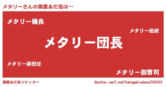 | 意味不明あだ名 | 『とにかく怪しいメタリー』 |