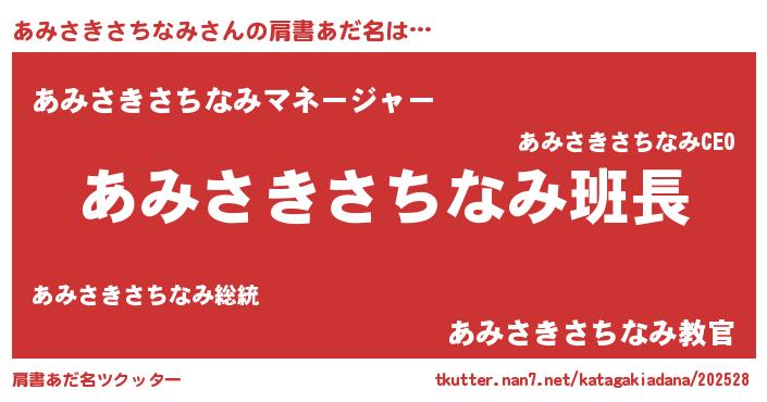 | 男性向けラノベタイトル風あだ名 | 『あみさきさちなみの嫁は女の子じゃないと思った?』 |