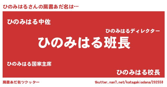 | ポケモン風あだ名 | 『ヒヒノミハル』『ヒノキング』 |