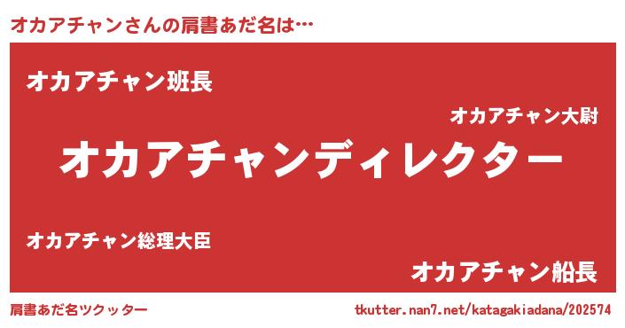 | ピコ太郎風あだ名 | 『オカ二郎』『ピオ二郎』『オオ太郎』 |