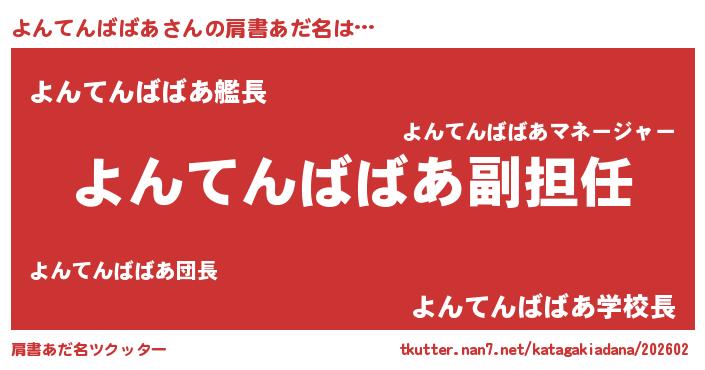 | 男性向けラノベタイトル風あだ名 | 『よんてんばばあという概念が存在しない退屈な世界 』 |