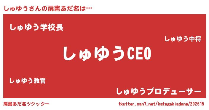 | ヒーロー風カッコイイあだ名 | 『スーパーシュユウ』『仮面シュダー』 |