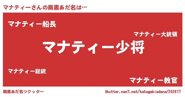 | ヒーロー風カッコイイあだ名 | 『仮面マナダー』『ネオマナティー』 |