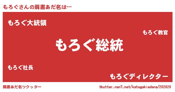| 意味不明あだ名 | 『自称もろぐ』『もろぐフォーエバー』 |