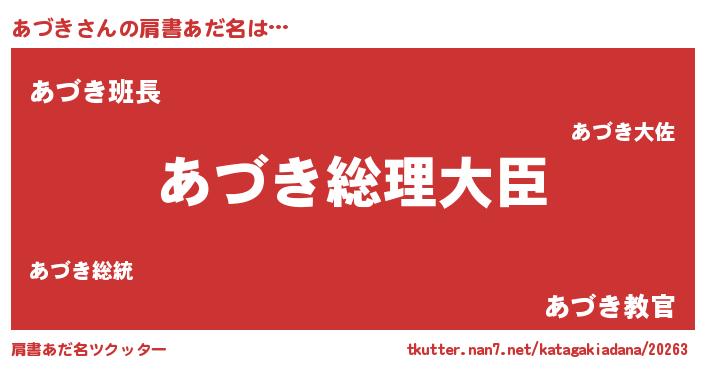| 意味不明あだ名 | 『あづきフォーエバー』『自称あづき』 |