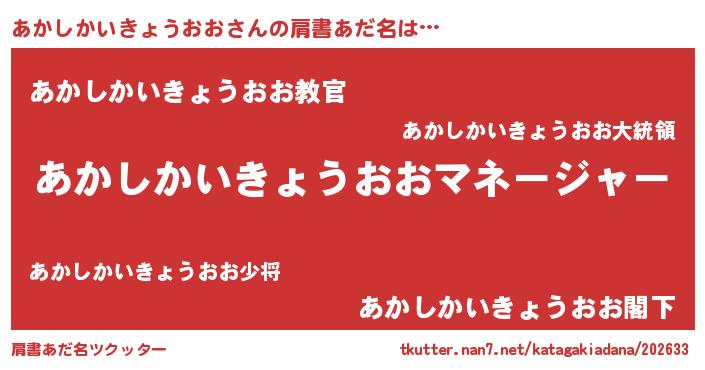| 恥ずかしいあだ名 | 『アカシカイキョウオオデラックス』 |