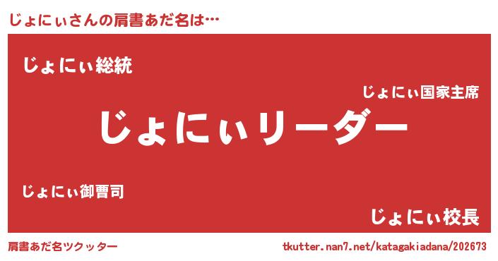 | 女子向けラノベタイトル風あだ名 | 『じょにぃの卵を拾いまして』 |