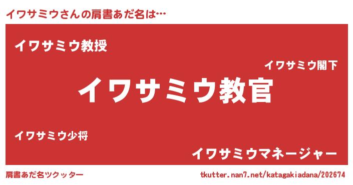 | ヒーロー風カッコイイあだ名 | 『仮面イワダー』『友情の使者イワサミウ』 |
