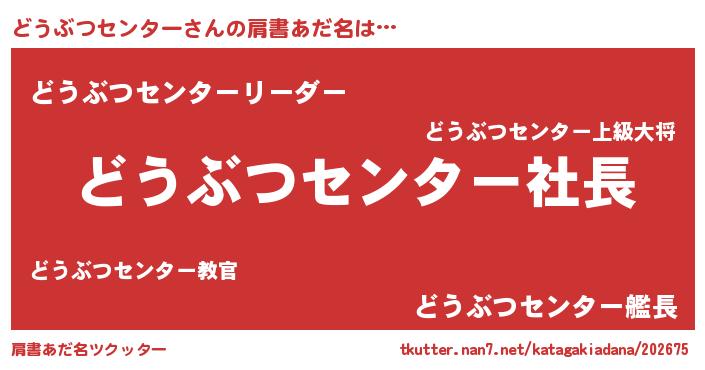 | ヒーロー風カッコイイあだ名 | 『スーパードウブツセンター』 |