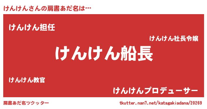 | ヘコむあだ名 | 『けんけん(小並感)』『けんもー』 |