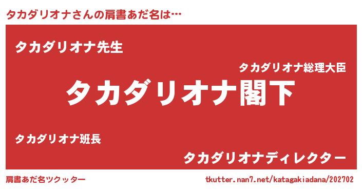 | 意味不明あだ名 | 『自称タカダリオナ』 |