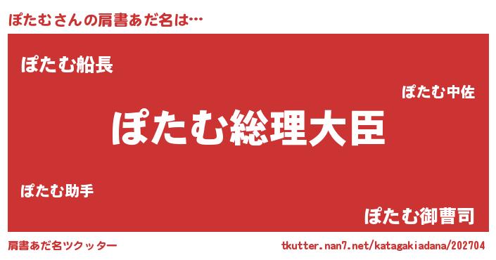 | 女子向けラノベタイトル風あだ名 | 『ぽたむ伯爵の花嫁』『死神ぽたむの再婚』 |
