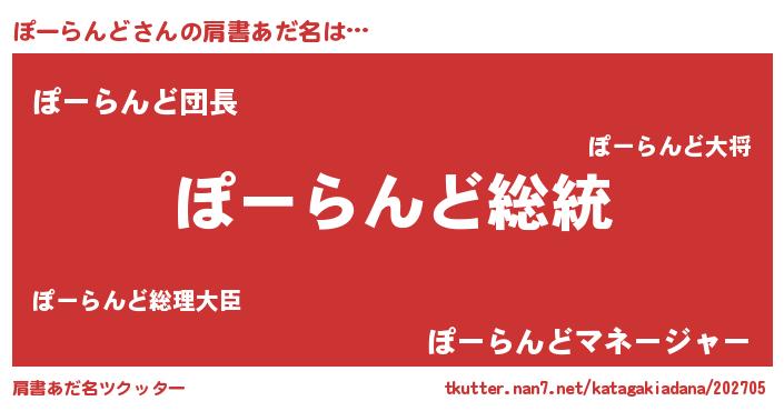 | 意味不明あだ名 | 『自称ぽーらんど』『ニラ科ぽーらんど属』 |