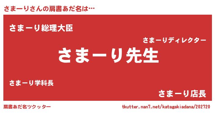 | ヒーロー風カッコイイあだ名 | 『ネオサマーリ』『ウルトラさまーりマン』 |