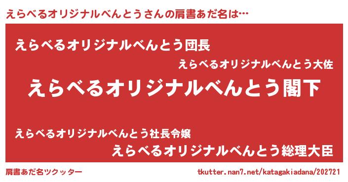 | 意味不明あだ名 | 『自称えらべるオリジナルべんとう』 |