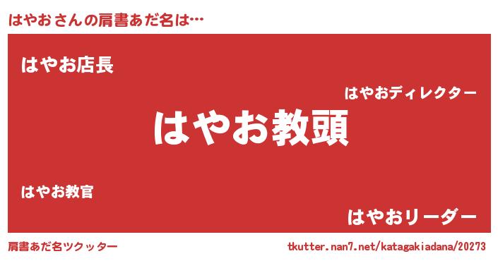 | ファンタジー風あだ名 | 『ハヤディッシュ』『ハヤフェル』 |