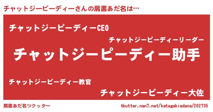 | ヒーロー風カッコイイあだ名 | 『正義の使者チャットジーピーディー』 |