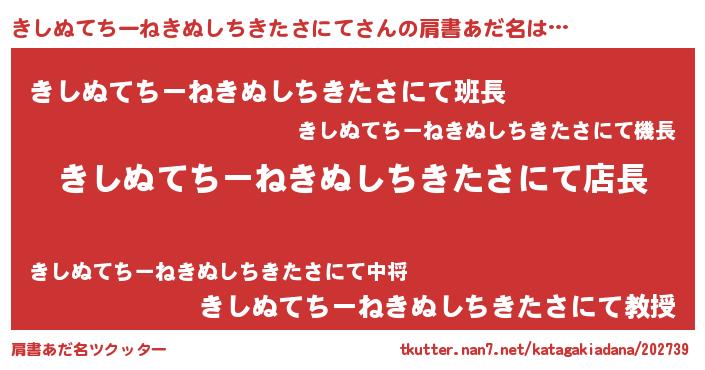 | 男性向けラノベタイトル風あだ名 | 『キシヌテチーネキヌシチキタサニテアートオンライン』 |