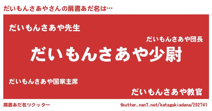 | 男性向けラノベタイトル風あだ名 | 『ダイモンサアヤスレイヤー』 |