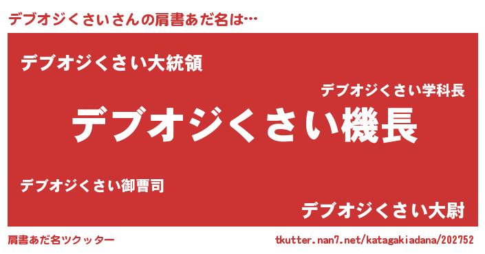 | 意味不明あだ名 | 『デブオジくさいフォーエバー』 |