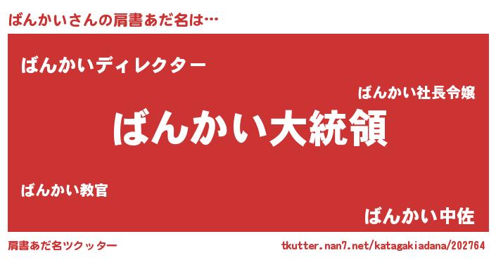 | 意味不明あだ名 | 『ばんかいフォーエバー』『自称ばんかい』 |