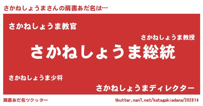 | 男性向けラノベタイトル風あだ名 | 『Re:さかねしょうまから始める異世界生活』 |