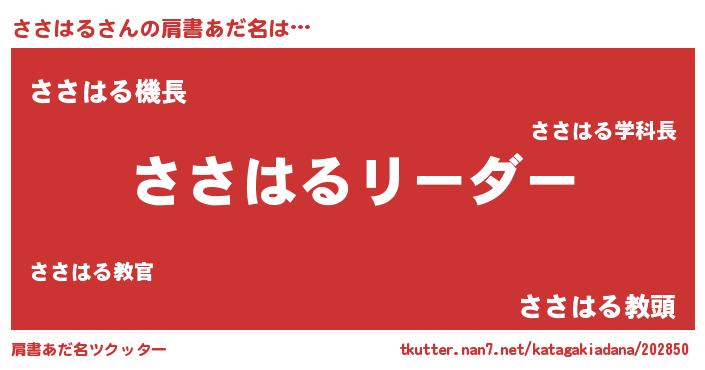 | 意味不明あだ名 | 『とにかく怪しいささはる』 |