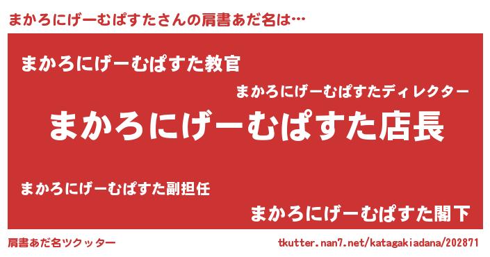 | 欧米人風あだ名 | 『マイケルまかろにげーむぱすた』 |
