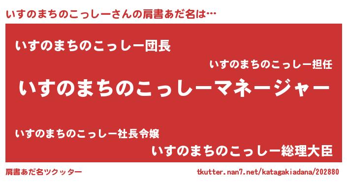 | 意味不明あだ名 | 『とにかく怪しいいすのまちのこっしー』 |