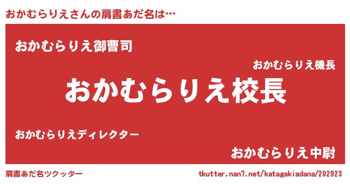 | 意味不明あだ名 | 『永久保存おかむらりえ』 |
