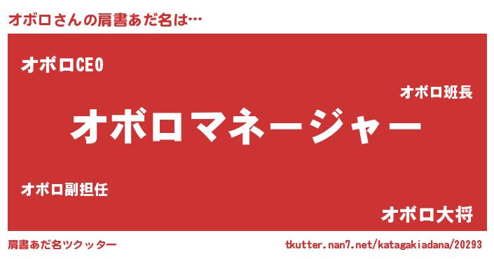 | ヘコむあだ名 | 『オボにー』『オボを』『酢こんぶ』 |