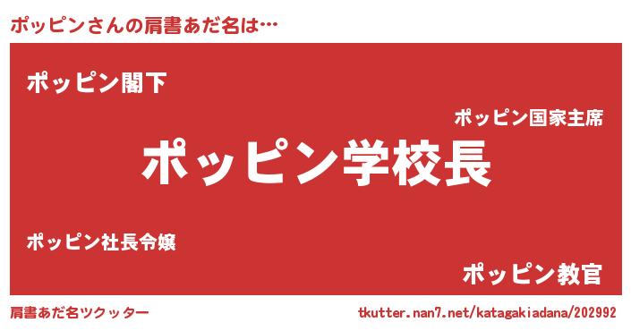 | ヒーロー風カッコイイあだ名 | 『慈愛の使者ポッピン』『仮面ポッダー』 |