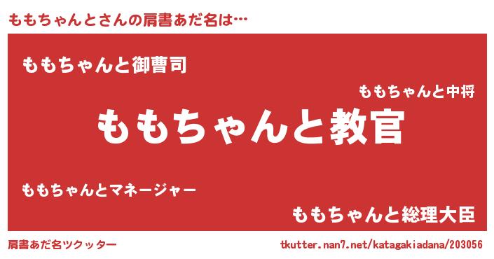 | 男性向けラノベタイトル風あだ名 | 『魔弾の王とももちゃんと』 |