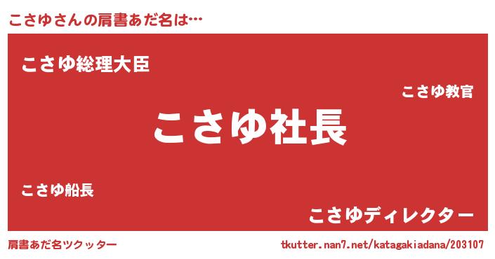 | 男性向けラノベタイトル風あだ名 | 『こさゆの憂鬱』『はたらくこさゆさま!』 |