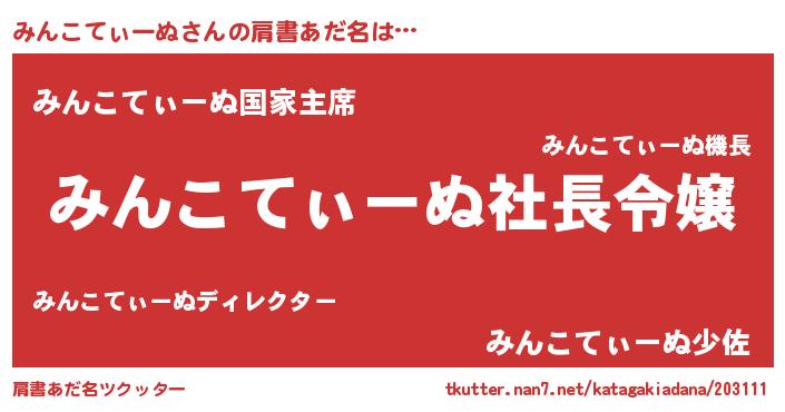 | 胡散臭い通販商品みたいなあだ名 | 『モテモテ間違いなし霊験あらたかなお札…その名も「みんこてぃーぬ」』 |