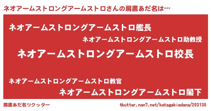| ヒーロー風カッコイイあだ名 | 『ネオネオアームストロングアームストロ』 |